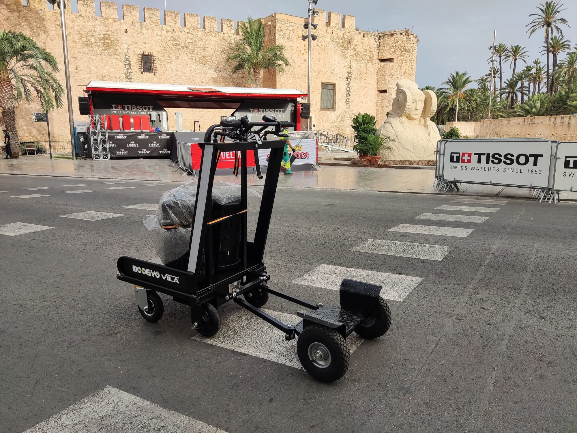 Patín electrico con carrito para el reparto paquetes o publicidad, repartir comida riders, repartidores, mensajeros, autonomos, delivery patinetes de ultima milla y mucho más.